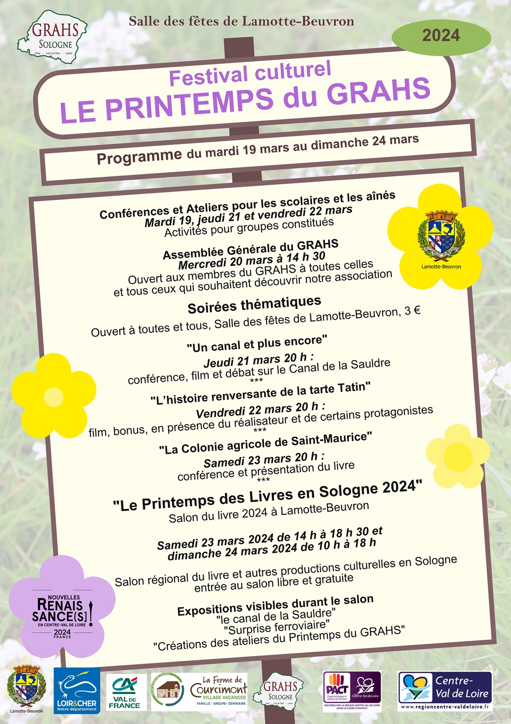 Cette semaine culturelle "Festival du Printemps du GRAHS" est labelisé Nouvelles Renaissances de le Région Centre-Val de Loire