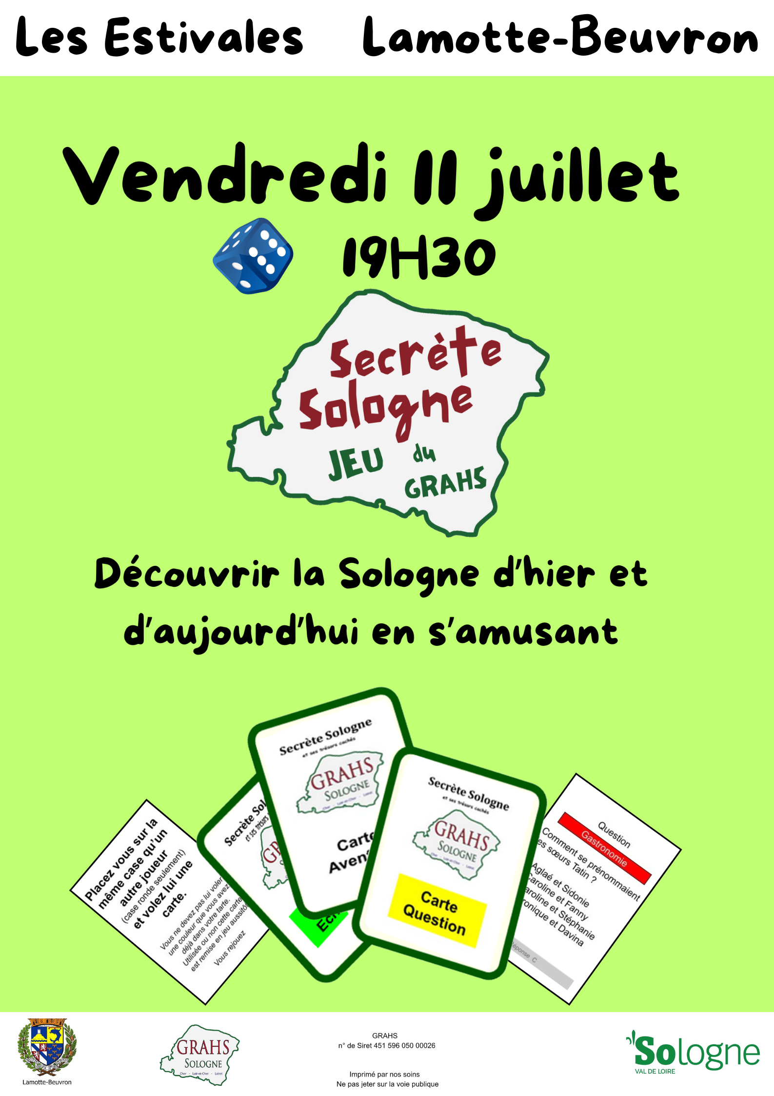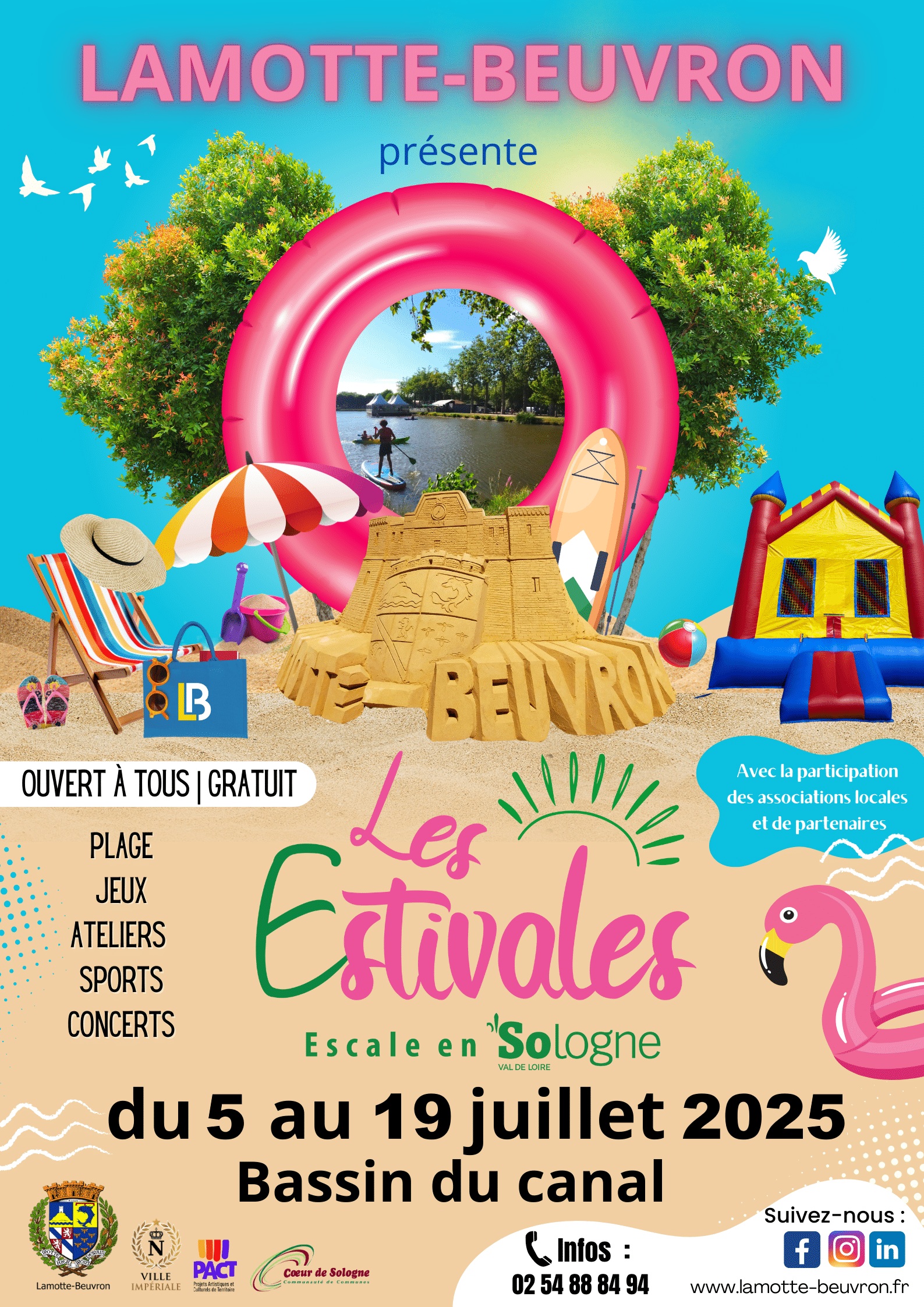Dans le cadre « des Estivales » à Lamotte-Beuvron, au bord du bassin du canal du 5 au 19 juillet 2025 organisées par la mairie de Lamotte-Beuvron, Le GRAHS vous propose des activités gratuites sur l’esplanade du bassin du Canal de la Sauldre :