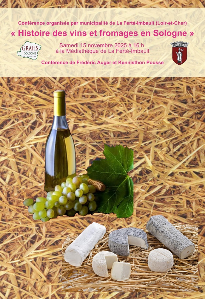 « Histoire des vins et fromages en Sologne » samedi 15 novembre 16 h médiathèque La Ferté-Imbault (Loir-et-Cher) mardi 28 octobre 2025