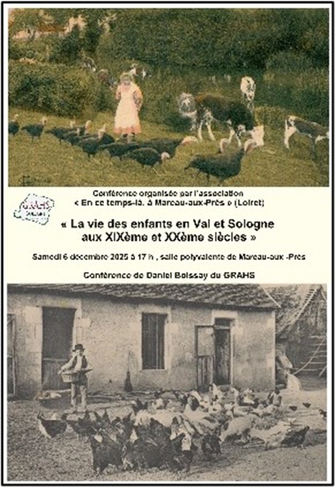 « La vie des enfants en Val et Sologne aux XIXème et XXème siècles » Samedi 6 décembre 2025 à 17 h, salle polyvalente de Mareau-aux-Prés mardi 28 octobre 2025