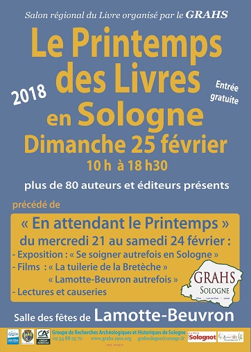 Salon du livre 2018 ; Printemps des livres 2018 ; Printemps des livres en Sologne 2018 ; Salon du livre Lamotte-Beuvron 2018 ; Salon régional du livre 2018 ; Salon 2018 du livre.