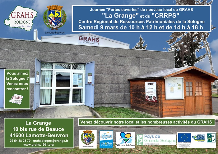samedi 9 mars 2024 de 10h à 12h et de 14h à 18h "Centre Régional de Ressources Patrimoniales de la Sologne" lundi 26 février 2024